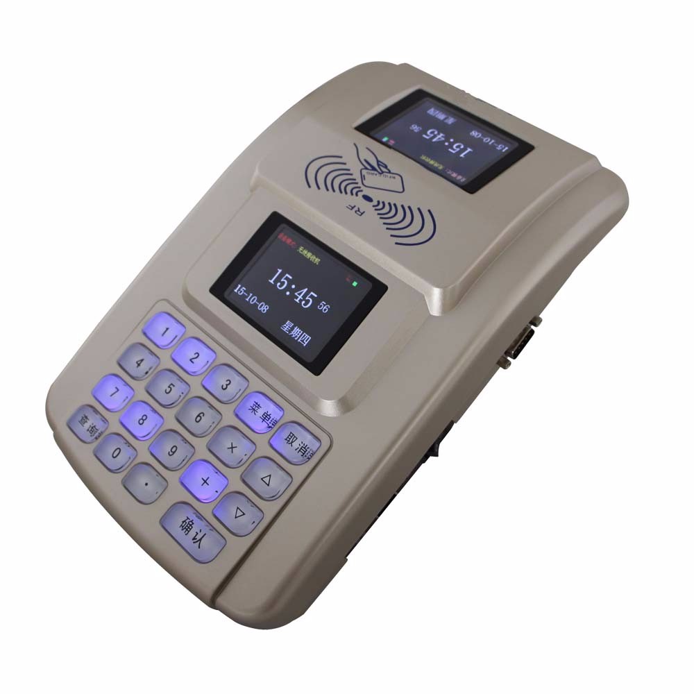 18、双面4行中文液晶显示屏,可显示编号与姓名,可显示中文菜名,消费金额等;